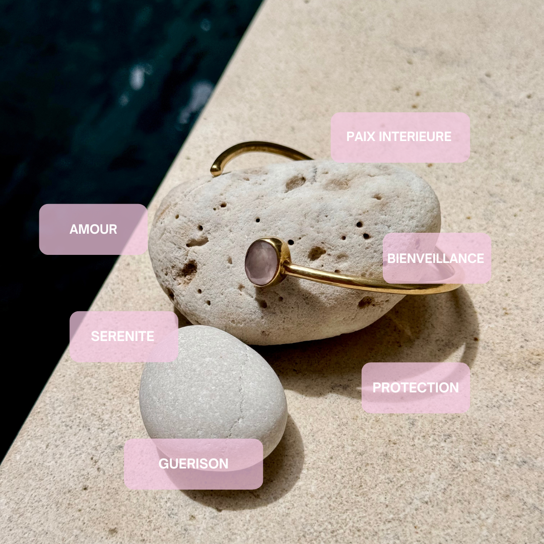 Lors de ses retraites pour femme, j’anime des ateliers de lithothérapie et nous avons créé un bracelet exclusif en quartz rose, symbole d’amour et de renaissance, offert à chaque participante.