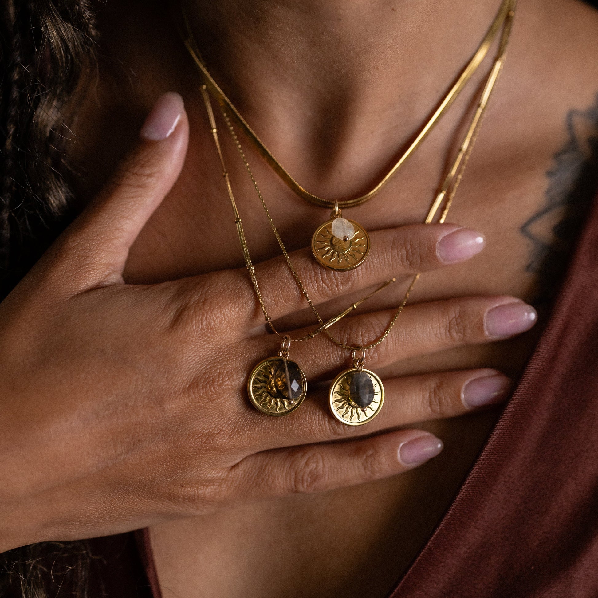 Bien plus qu’un bijou, l’Amulette Aegis est un talisman solaire qui enveloppe votre aura et révèle votre pouvoir intérieur.